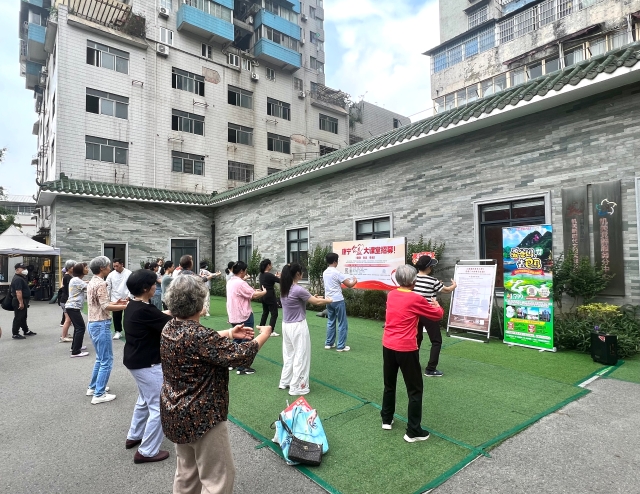 为深化“感恩父母 健身养生”的主题,活动还设置了养生操互动教学环节。“双手托天理三焦,左右开弓似射雕……”在党群服务中心广场上,数十名中老年居民在讲师带领下,学习融合巴马长寿老人起居习惯的养生操。动作舒缓柔和,兼顾拉伸与穴位按摩,特别适合老年人强身健体。